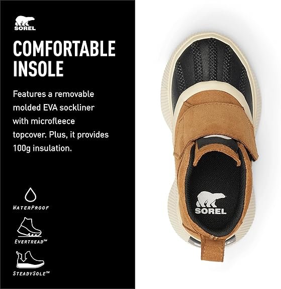Demisezoniniai Sorel aulinukai. Vidpadis 17,2 cm. Labai lengvi, užsegami vienu plačiu lipduku. Waterproof.